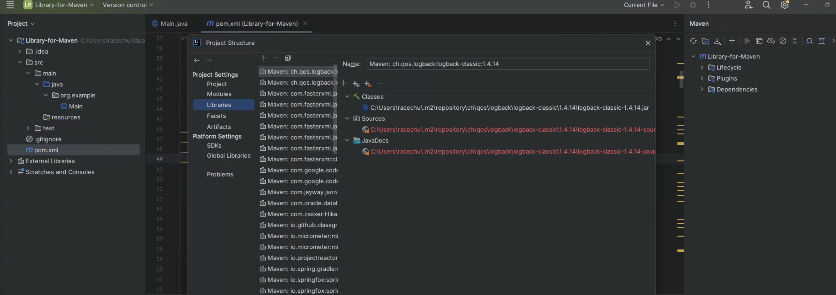 - Ex) C:\Users\racechu\.m2\repository\외부라이브러리 확인