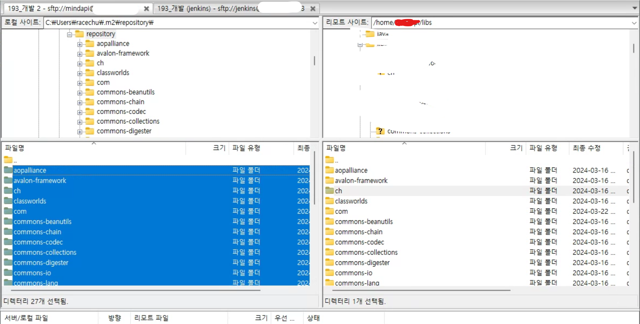 ※ 잘못 기입 된 외부라이브러리 명 혹은 버전으로 인해 다운로드 안되는 상황 발생 - C:\Users\racechu\.m2\repository 내 모든 폴더 NEXUS 서버 복사